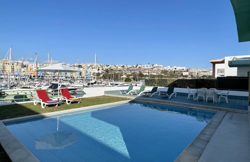 This stunning villa in Albufeira offers spacious and comfortable accommodation for up to 10 people, ideal for a relaxing getaway in the heart of the Algarve.HOUSE CHARACTERISTICS:ROOMS: Distributed across two floors, with one room on the ground floor equipped with two single beds and three rooms on the first floor. The main bedroom includes a luxurious double bed and a private bathroom. The other two rooms are equipped with a double bed and two single beds, respectively.LIVING ROOM: A spacious living and dining area, equipped with internet access (Wi-Fi), heat pump heating and air conditioning for maximum comfort. The living room opens onto a private garden and swimming pool, providing a perfect environment for relaxation.BATHROOM: In addition to the private bathroom in the suite, the villa has two shared bathrooms, both with bathtubs.KITCHEN: Fully equipped and independent, ideal for preparing delicious meals during your stay.EXTERIOR: The exterior includes an enchanting garden, outdoor furniture, a spacious terrace, a barbecue, and a private swimming pool, ensuring memorable outdoor moments.PARKING: Offers a private garage within the building itself.LOCATION: Located in front of the Albufeira marina, this villa is conveniently situated near various amenities, including supermarkets, popular restaurants such as "Viva La Ciccia - Steakhouse & Pasta" and "Nosolo Italia", and just a few kilometres from the stunning beaches of São Rafael, Peneco and Pescadores. The area also offers easy access to golf courses, theme parks such as Zoomarine and water attractions like Aquashow and Slide & Splash.Take this opportunity to book and enjoy wonderful holidays in a peaceful and well-equipped environment, ensuring an unforgettable stay in Albufeira.RNAL: 134998/ALNote:Our property requires a deposit of €500. Close to the check-in date, a request is sent to block the deposit on the credit card.According to the municipal regulation, each guest shall pay a tourist tax of two euros between 01 April and 31 October and will be charged up to a maximum of seven consecutive nights for all guests aged 13 years or older. The tourist tax amount is not included in the reservation value..