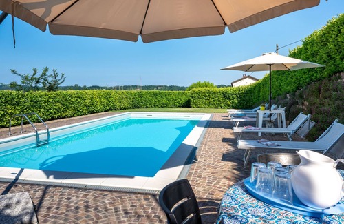 Very comfortable cottage "Marmorito", semi-detached, surrounded by meadows and fields. 3 km from the centre of Portacomaro, 9 km from the centre of Asti, 40 km from the centre of Alba, residential area (villas). Private: property 3'000 m2 (fenced), well-kept garden with lawn and wildlife garden, swimming pool (12 x 5 m, depth 100 - 200 cm, seasonal availability: 05.Apr. - 30.Oct.). Shower/WC in the pool area, outdoor shower, pool maintenance by the owner/gardener. In the house: fitness room, table football. Parking at the house on the premises. Shop 3 km, supermarket 6 km, bus stop 1.7 km, railway station "Asti" 9 km. Golf course (18 hole) 18 km. Please note: car recommended. Part of the house is closed and unoccupied.