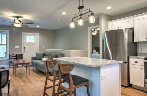 Mars Hill Hideaway will make you feel like you've found the enchanted forest just past the charming mountain town that’s home to Mars Hill University. Ideal for a small family or group of friends looking to escape the hustle and bustle of everyday life, this newly-constructed home is close enough for food deliveries but country enough to enjoy the peace and quiet. The gas fireplace in the open living and dining area will make you want to cozy up and watch a good movie on a cold evening. Mountain views from the upper deck create a great place to relax in any season, and you’ll be thanking the screens in the summer! Gather together to roast marshmallows and tell stories around the fire pit before retiring for the evening. Pick the main-floor suite for its comfort and roomy walk-in shower, or opt for one of the lower-level bedrooms if you need a little more space. The lower level also offers a laundry area and deck access. Located just minutes from both hiking trails and the grocery store, Mars Hill Hideaway is the perfect place to explore the outdoors and experience the liveliness of this tiny college town. And if you're looking for extra fun, there are so many things to do while you're staying at Mars Hill Hideaway, including playing disc golf on the campus course and biking in the Bailey Mountain Bike Park. Discover for yourself why Mars Hill is known for its beautiful landscapes and friendly people! This Asheville vacation rental is located in Mars Hill and is approximately 25 minutes from downtown Asheville.