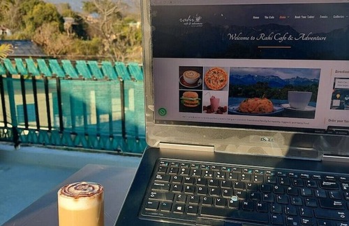 adjacent cafeteria rahi cafe offers tasty, fresh, and healthy meals & beverages (discounted!) with mountains and a stream view