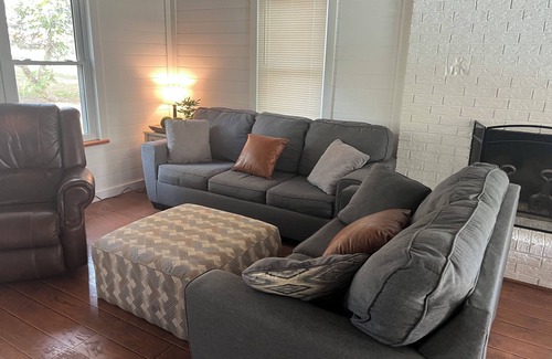This Milam cottage boasts 2 inviting bedrooms. Each bedroom offers a cozy retreat, with a king bed in one and a full bed in the other. The property is perfect for a relaxing getaway, featuring amenities like AC, heating, a hair dryer, WiFi, and a washing machine. The bathroom is equipped with a refreshing shower. Whether you're exploring the nearby attractions or simply unwinding in the comfort of the cottage, you're sure to make fantastic memories with a stay at our place..