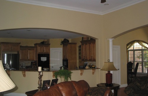 Captivating luxury home in a private wooded setting, spacious eat-in- kitchen, butler's pantry equip for your morning coffee, afternoon smoothie, or evening night cap. A large dining room for your evening meals, living room comfortably situated for total relaxation. After walking miles at the Masters, retreat to the owners suite, take a relaxing bath or enjoy a shower built for two. Enjoy two additional owners suites one on the 2nd level with a large walk-in-closet for all your belongings and a spa like bathroom and shower. The other on the main floor, with a walk-in-closet and a private bathroom and shower/tub. Also enjoy two additional bedrooms with queen size beds that share a private shower and water closet behind a closed door, and on the other side are two separate sinks. For the fitness minded guest there is a workout room with free weights 5-30 lbs, Smith Machine (universal), elliptical trainer, TV and a few other pieces of equipment. At the end of the day have dinner or cocktails on the covered porch. Also there is washer and dryer for your use. ** Travel lighter - I will provide a blow dryer, salon shampoo & conditioner and soaps for bathing. **.