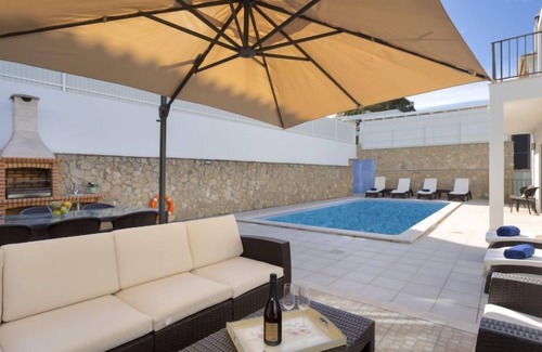 Very modern, cosy villa "Mathilda". Outside the resort, 5.3 km from the centre of Albufeira, in a quiet position residential area (villas), 2.3 km from the sea. Private: property (fenced), swimming pool angular (4 x 8 m, depth 100 - 180 cm, seasonal availability: 01.Jan. - 31.Dec.). Outdoor shower, terrace. In the house: WiFi, air conditioning, washing machine. Parking at the house. Shop 2.1 km, grocery 1.3 km, supermarket 1.3 km, shopping centre 5.1 km, restaurant 750 m, bar 270 m, bakery 1.3 km, café 270 m, bicycle rental 3.9 km, bus stop, railway station 8.8 km, sandy beach "Praia de São Rafael" 1.9 km, rocky beach "Praia da Ponta Pequena" 1.8 km, diving center 2.3 km. Marina 2.3 km, golf course (18 hole) 4.6 km, surf school 3.4 km, tennis 6 km, minigolf 5.8 km, riding stable 4.9 km, children's playground 3.8 km. Nearby attractions: Zoomarine Algarve 7.9 km, Krazy World 14.6 km, Fiesa Sand Sculptures 16.2 km, Aqualand Algarve 12 km, Marina de Albufeira 2.3 km, Reserva Natural Caminho da Baleeira 2.3 km. Well-known lakes can easily be reached: Lagoa dos Salgados 7.7 km. Please note: car recommended. Suitable for families. Object suitable for. The owner does not accept any youth groups. Loading and unloading of baggage is possible at the holiday house.