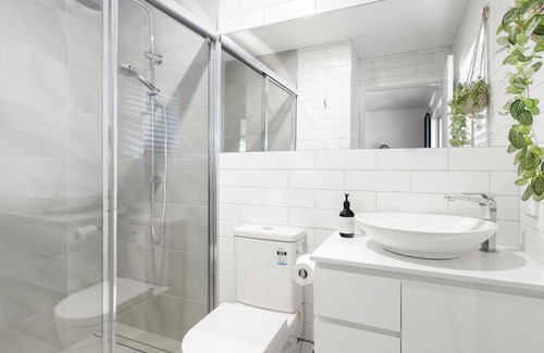 downstairs you will find a third bedroom, also with queen bed, and the fourth bedroom which has a tri-bunk (double on bottom, single on top) There is also a living room/tv room, third bathroom, laundry and another rear deck with sitting area and stairs leading down to the rear garden.