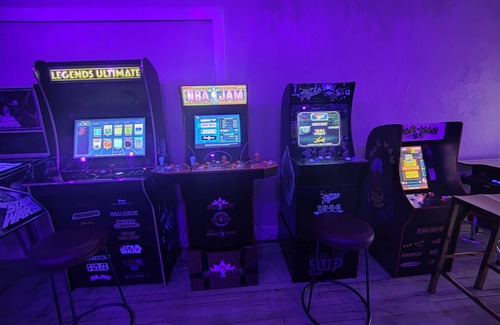 *the arcade room boasts a variety of classic arcade machines, a lively ping pong table, and an exciting foosball table Additionally, there's a clubhouse accessible via a 5-foot climbing wall. once inside, kids can relax in comfy bean bags or take a thrilling ride down the twirl slide!