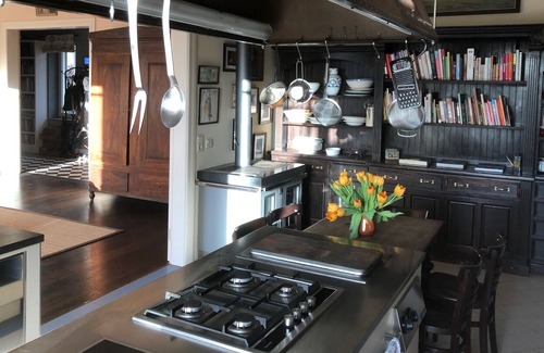 A country house villa with a great view of the landscape! 400 sqm living space. Cool and chic outside; cozy, warm inside, full of pictures and books.