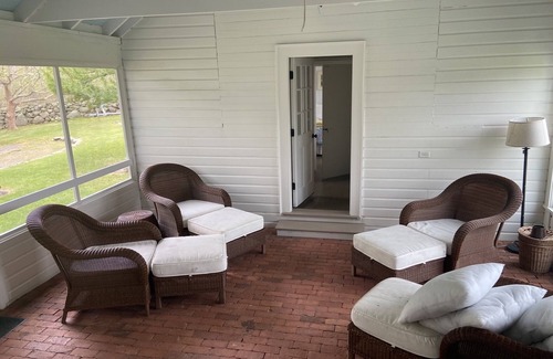 pond front cottage and attached silo house, 4-5 bedrooms on large acreage fronting menemsha pond, big views of the long lawn and waterfront Quiet private neighborhood in Chilmark . Private waterfront beach available at end of lawn and ability to purchase pass to Chilmark's Lucy Vincent Beach or Squibnocket Beach, a short drive by car. Pristine family retreat, definitely one of a kind memorable location for relaxing and water sports in the vast Menemsha Pond and ocean Several family gathering spaces in deep chairs on the brick floored screen porch for cocktails or out on the lawn in chairs overlooking the water, or a day in the hammock or at water's edge for boating or paddle boarding.It's an era gone by with all modern amenities. and updates.what a treasure!