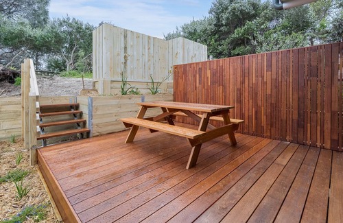 you are spoilt for choice when it comes to outdoor seating with a large protected balcony at the front of the property which is perfect for your afternoon sunset bbq listening to the waves, or enjoy the back decking area for your morning coffee and listening to the birds sing