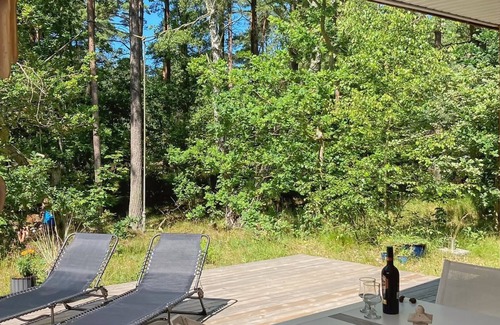 Single-family house, built in 1976. 800 m from the sea. Private: natural state property 2'550 m2. Terrace (20 m2), children's playground (swing). In the house: washing machine. Parking at the house. Carport. Grocery 3 km. Golf course 6 km. The owner does not accept any youth groups.
