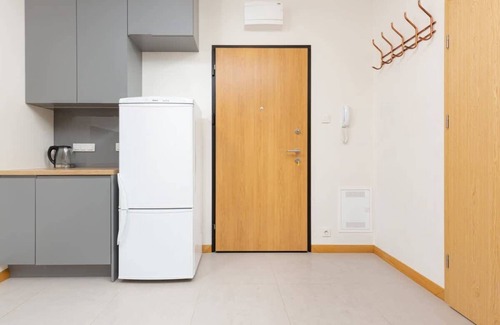 the apartment can comfortably accommodate 4 people The 42 m² surface is diving into a living room with a double sofa bed, a kitchenette, a separate bedroom with a double bed, and a bathroom with a shower. The interior is bright and modernly finished, with a homely atmosphere that makes guests feel right at home. The private balcony fitted with garden furniture overlooks the inner courtyard, providing a sense of peace and quiet. The extensive amenities include entertainment facilities (flat-screen SmartTV with access to the Internet and terrestrial TV channels), a free access to a Wi-Fi network, and a wide range of essential household appliances. The apartment comes with a washing machine, dishwasher, ironing equipment and a hair dryer. The living room also has a desk with an office chair, perfect for remote work with a laptop. For an easy beginning of every stay, complimentary cosmetics set, towels, and bed linen are provided.
