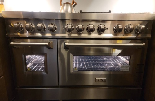 2 - cook includes professional kitchen with z-line range and 8 person dining table
