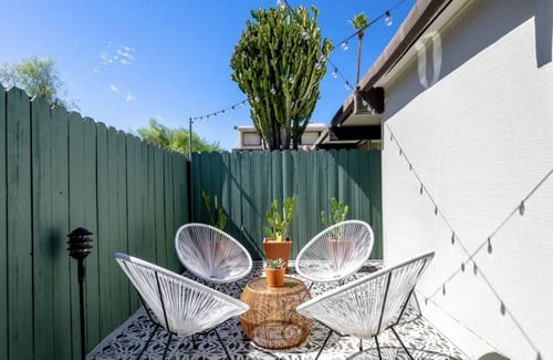 Mid-Century Modern Bohemian Bungalow w/Pool is located in Twin Palms. Mid-Century Modern Bohemian Bungalow w/Pool provides accommodation, featuring Wellness Facilities, Spa, Bedding/Linens, among other amenities. This House features Wellness Facilities, Spa, Bedding/Linens, to make your stay a comfortable one.