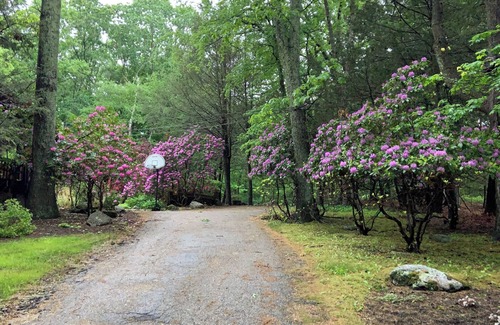 drive up to our house which is situated on a private wooded property, with ample open grassy space to play, private tennis court, basket ball hoop, all for your enjoyment Relax and enjoy the beautiful flower beds, trees and nature. Take long walks on the trails that abut the property.
