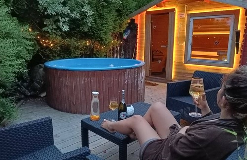 Cozy apartment near Sandefjord centrum and airport. Features outdoor spa with hot tub, sauna and shower! 3 bedrooms for total of 8 guests. Me and my son Olav lives in the basement apartment of the house and always ready to help 😊🏡.