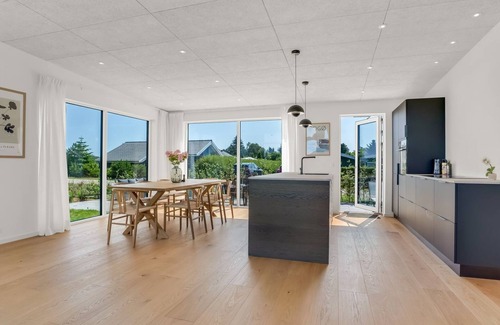 Single-family house, built in 2025. 1.5 km from the sea. For shared use: garden. Private: natural state property 835 m2, garden (fenced). Terrace (100 m2), barbecue. In the house: washing machine. Parking at the house. E-charging station. Grocery 500 m. Golf course 10 km. The owner does not accept any youth groups.