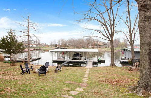 Great patio view overlooking the lake. Easy walk to the boat dock and sun deck. 3 bedrooms 3 bathrooms. Master bathroom has tub only. No shower. Fully furnished kitchen. Ready to walk in and enjoy your vacation. No wake zone area with deep water. fire pit on the property. it does not have any wood so bring your own. the patio does have a gas grill and outdoor table and chairs. you may want to bring something to float on. kayaks available at no charge. 10 person pontoon boat is available to rent and will be at the dock. 10 life vests for adults only. boat and kyaks are seasonal. Dish TV service. internet code is in the book
