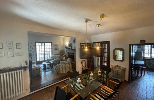 the sleeping area, which is connected by a wooden staircase from the living room on the first floor, consists of three large double bedrooms and two new bathrooms with shower cubicle, toilet and bidet Typical Tuscan antiques were cleverly combined with tasteful modern furniture. A house to feel good and large families will find space to play and have fun, and there is enough space to relax. Central heating is available in the house so that it can also be used in the off-season. Parking space is on the fenced property. Next to the house there is also a brick grill and an outside seating area to enjoy the mild evenings in summer. There are also garden loungers. Dogs are welcome and can enjoy the large fenced property.