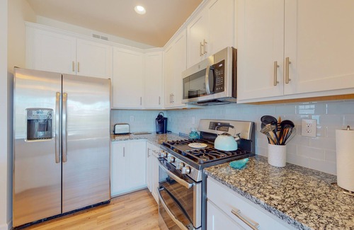 the muted colors and all-white walls will put you in a calm and cool state of mind (the central air conditioning also doesn't hurt!) Lots of beach equipment is provided for guest enjoyment, and you can wind down after a day at the beach on the living room's sectional sofa in front of a gas fireplace. There's also a sectional couch upstairs in the home's more casual second living room. The full kitchen features lots of kitchen equipment for guest use, as well as a prep island that doubles as a fun breakfast bar for casual meals. If you'd rather cook out, feel free to light up the private gas grill and enjoy a meal on the screened-in porch. Guests can also enjoy access to a shared pool, fitness center, and outdoor shower during their stay at this lovely home. We kindly ask our guests to note that our community does not permit commercial vehicles on the premises. We kindly request that guests have a personal vehicle rather than a commercial one during their stay. thank you for your understanding!