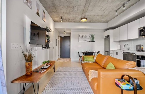 guests have full access to the entire condominium, including 1 bedroom, 1 bathroom, designer kitchen, living room, and private outdoor balcony space (balcony furniture and barbeque seasonally available based on weather)