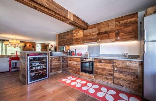 Moabi is a modern apartment in a beautiful chalet of Le Praz. Just next to the slope of Jean Blanc, it offers ski-in and ski-out access. This property features 5 bedrooms and 5 bathrooms, modern equipment as well as a fully-equipped kitchen. A sauna, a jacuzzi, a spacious outdoor area with a private garden, a fireplace, an underground garage as well as a ski locker are also at your disposal. This apartment is completed to a high level finish using considered materials and design. Last but not least, the view is great and the surroundings charming.