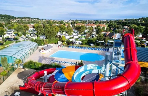 Mobil-home | Comfort XL | 2 Ch | 4 pers | Raised terrace | A/C | TV is located in Houlgate. Mobil-home | Comfort XL | 2 Ch | 4 pers | Raised terrace | A/C | TV provides accommodation, featuring Security/Safety, Sports/Activities, Child Friendly, among other amenities. This House features Security/Safety, Sports/Activities, Child Friendly, to make your stay a comfortable one.