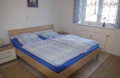 in the bedroom, the large double bed with height-adjustable slats and high-quality mattresses and bedside tables with reading lights and clock radios contribute to the recovery For a good night's sleep, the room can be completely darkened with a roller blind.