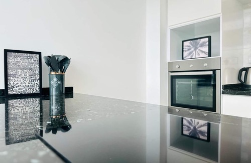 brand new, high-quality living space, equipped to the highest standard Accommodates 2 people in a comfortable double bed. The apartment also features two full bathrooms, an open plan and fully equipped kitchen as well as a large terrace for outdoor dining and sun-bathing. In the apartment there is aslo a large smart Tv. By renting this accomodation you get access to the spacious communal pool area with sun loungers, shaded pavilions, and a pool bar. There is also a state-of-the-art gym and a spa with a heated indoor pool for the winter months.