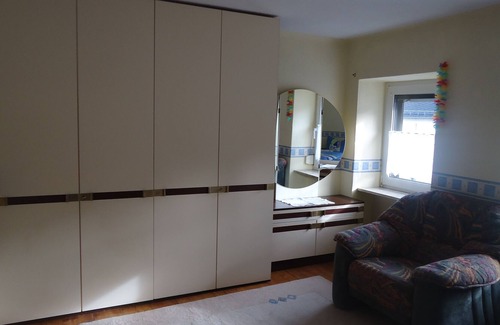 Double, single or 100sqm holiday apartment for rent to hikers, tourists, bikers, fitters of all kinds. Also possible with children and animals. Pure relaxation on the 60 sqm terrace with barbecue or 250 sqm large lawn with loungers. Satellite system with German, English, Italian, Polish and French channels and Wi-Fi available. Price and conditions on request by phone or under hausmorbach et, aol com. Location, forest, nature conservation, recreational area and sports nearby. Quiet, yet central and cheap. A bathroom with tub / shower. Two double bedrooms for 4-6 persons and the well-equipped kitchen with dining table invite you to a cozy and carefree time. Incl. Electricity, water and heating. Storage space for bicycles in the garage accessible from the outside. Shops and restaurants in the immediate vicinity. To the Mosel (18Km). Bernkastel-Kues (18km). Trier (57km). Wittlich (28km). frankfurt-hahn airport (17km)