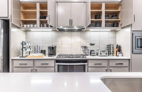 brand new appliances and furniture, washer and dryer included plus a full kitchen with: refrigerator, dishwasher, oven, stove, microwave, keurig, cooking ware, plates, cups & utensils