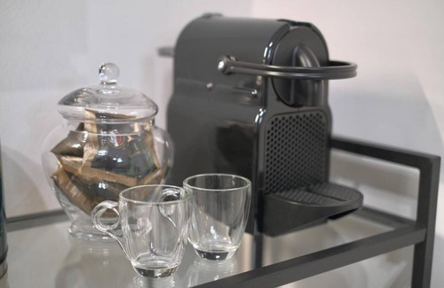 the kitchen is equipped with an induction hob, oven, refrigerator, dishwasher, kettle, nespresso coffee machine and all the necessary utensils and crockery