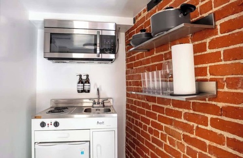 this bachelor unit is thoughtfully laid out to maximize comfort and convenience Rest easy on the full-size bed, perfect for unwinding after a day of sightseeing. The kitchenette includes all the basics you need to prepare light meals and snacks. Situated in a corner of the building, the unit enjoys extra privacy and natural light, adding to its cozy charm.