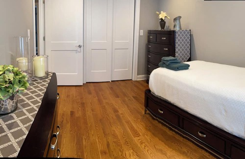This 3-bedroom apartment is a perfect home base for your Northern NJ/ NYC adventures. Step inside this immaculate and modern property and you'll find a comfortable and calming retreat that will make you feel right at home. The bedrooms are tastefully furnished with a queen bed, a full bed, and a twin bed, ensuring a comfortable night's sleep for all guests. With amenities like WiFi, full size washer and dryer, AC, heating, and linens, your stay will be excellent and hassle-free. The 2 bathrooms provide convenience and privacy. Whether you're exploring the city or simply relaxing indoors, this superb apartment is the ideal choice for your vacation. We're happy to assist with any questions while you stay at our apartment..