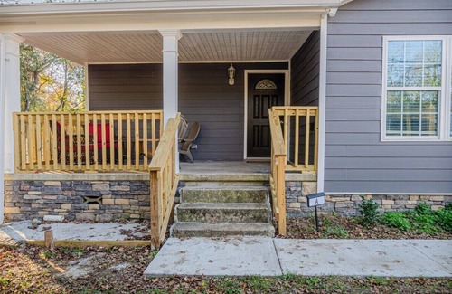 embrace tranquility and entertainment in this stylish columbus retreat with modern decor Features include a chic dining area, plush bedrooms, a well-appointed kitchen, a cozy living room. Relax on the serene outdoor porch amidst lush greenery. A perfect blend of comfort and leisure awaits.