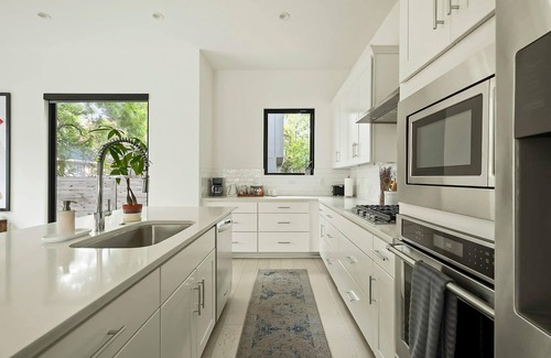 this charming house is a quiet, bright, spacious, and serene space located in the heart of east austin Recharge in this serene house or step out to enjoy the nearby coffee shops, bars, and parks. Immerse yourself in the minimalist ambiance of this brand-new 4-bedroom home, accentuated by its soaring ceilings.