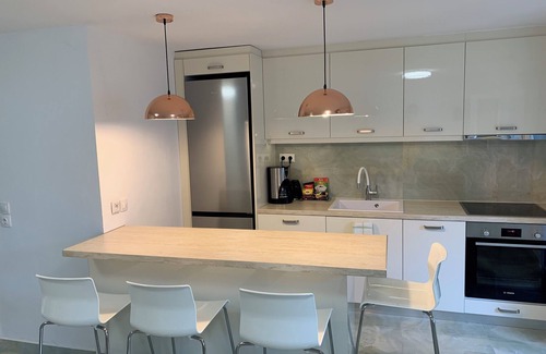 Modern family-sized condo near the beach is located in Nea Fokaia. Modern family-sized condo near the beach provides accommodation, featuring Parking, TV, Wellness Facilities, among other amenities. This Condo features Parking, TV, Wellness Facilities, to make your stay a comfortable one.