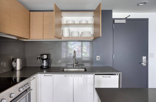 as with any blueground apartment, you’ll find a thoughtfully designed space complete with beautiful furniture and a fully equipped kitchen in this one bedroom property And, thanks to our superior quality mattresses, luxury linens, and towels, you can relax knowing you’ll always feel comfortably at home. When you’re ready for some fun, you can take in the Boston vibes or bring the entertainment to you with the premium wireless speaker or smart TV. This apartment also offers in-apartment laundry.