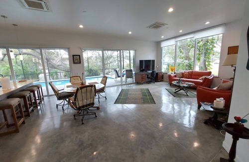 Newly constructed Modern design in Dunedin, entire first floor guest suite with separate entrance, open plan Great Room - Kitchen, with lots of light, screened and solar heated 40 ft. private lap pool, table tennis, fitness room, bicycle 10 mins. to Pinellas Trail, 15 mins. to Honeymoon Island. Wheelchair accessible. Private Pool, Pooldeck and backyard located on west side of home.