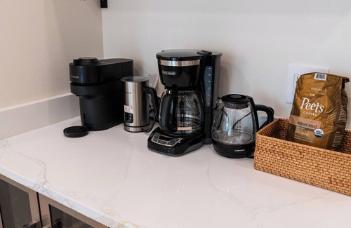 Welcome to your modern Eugene retreat, just minutes from the University of Oregon. This newly built home is designed for comfort, entertainment, and unforgettable gatherings. Enjoy a spacious open-concept layout featuring a chef’s kitchen with high-end appliances, a large island, and seamless flow into the living area. The 85-inch smart TV, gas fireplace, and built-in ceiling speaker system make movie nights and game days unforgettable. Step outside to the covered outdoor kitchen and lounge area, complete with a TV and grill, perfect for entertaining year-round. Each of the four bedrooms offers a king-size bed, and three include 65-inch smart TVs for private relaxation. The luxurious bathrooms boast custom tilework, rainfall shower heads, and spa-inspired finishes. Throughout the home, you’ll find custom woodworking that adds warmth and elegance. For indoor fun, head to the garage, outfitted with a ping pong table, air hockey, and arcade-style basketball game—a hit for families and groups. Whether you're visiting Eugene, cheering on the Ducks, or attending a track event, this home offers the perfect mix of luxury and location..