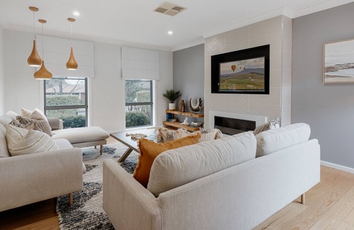 experience the charming suburban atmosphere of waramanga in this contemporary 3-bed, 2-bath home with a remote-operated double garage Fully renovated throughout, there are multiple formal and informal living areas over a generous 140m2. Externally there is a firepit complete with seating, paved entertaining area, Webber BBQ, water feature and pittosporum enclosed lawns front and rear for privacy. Maybe this will become your semi-regular, home away from home? We welcome longer-term stays.