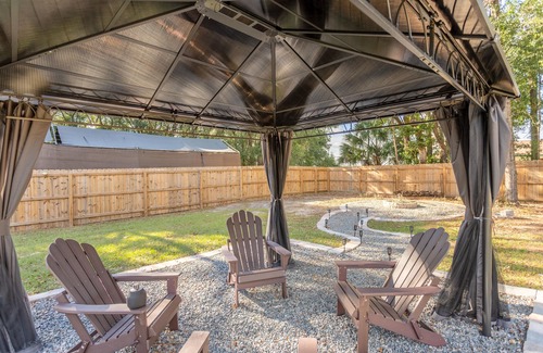 this home features 3 bedrooms and 2 baths The master bedroom has a king size bed and it's own ensuite bathroom featuring a sink, shower, and toilet. The other 2 bedrooms are queen sized beds and share a hall bathroom with a tub shower. Each bedroom and living room boasts a smart tv with streaming options if you login to your subscriptions. The kitchen is fully stocked so you can cook and make yourself at home. The backyard features a propane grill, fire pit, and dining area that even comes with shelter from the rain and bugs. The backyard is fully fenced and is perfect to accommodate children and dogs or fun adults who like to throw a frisbee or lounge and read a book under the mature trees. come make yourself at home!