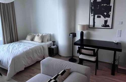 on the 14th floor, with views of the breathtaking helsinki skyline and the calm sea, our studio is a treasure trove of comfort, style and convenience, designed especially for the solo or dual adventurer This studio is located right next to the bustling REDI SHOPPING CENTER in the lively Kalasatama area, known for its rich cultural tapestry and lively atmosphere. It's the perfect base from which to explore all the charms and wonders that Helsinki has to offer.
