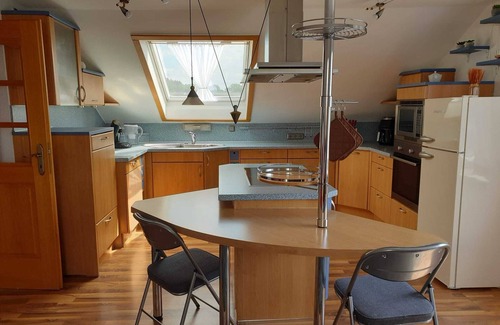 Modern top-floor apartment in the idyllic suburb of Mainleus is located in Mainleus. Modern top-floor apartment in the idyllic suburb of Mainleus provides accommodation, featuring Balcony/Terrace, Bedding/Linens, Wellness Facilities, among other amenities. This Apartment features Balcony/Terrace, Bedding/Linens, Wellness Facilities, to make your stay a comfortable one.