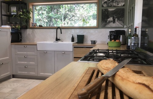 our house offers relaxation areas with an outdoor living area, a hammock, a covered barbecue and table, an exterior shower, and a garden with vegetables for your dishes