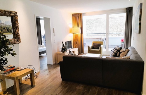 a short distance from snowboarding, ice skating, and more, this smoke-free apartment lets you experience it all With the property's convenient covered onsite parking, you'll be ready to make the quick 4-minute drive to Hochjoch Gondola or the 6-minute drive to Alpine-Coaster-Golm.If you're looking to expand your horizons and see other nearby locales, you can catch a train at Tschagguns Station, a short 9-minute walk away.