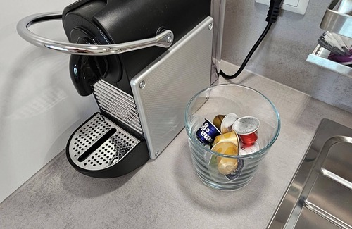 the kitchen is equipped with an oven, a stovetop, and a refrigerator, as well as a coffee maker, an electric kettle, and a microwave Bathroom amenities include a hair dryer, towels, and toilet paper. And you can even pack a bit lighter because there's a washer and dryer. Other amenities include a living room, bed sheets, bike storage, and heating.