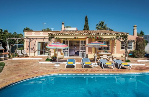 the delightful villa is situated in the very popular quinta dos alamos, a residential estate, 10 minutes walk from guia The villa has a beautiful lawned garden, which is very private, as it is enclosed by a wall and gate. The swimming pool with Roman steps, can be heated (this is available as an optional extra) is surrounded by terraces. There is also a brick BBQ & shower.
