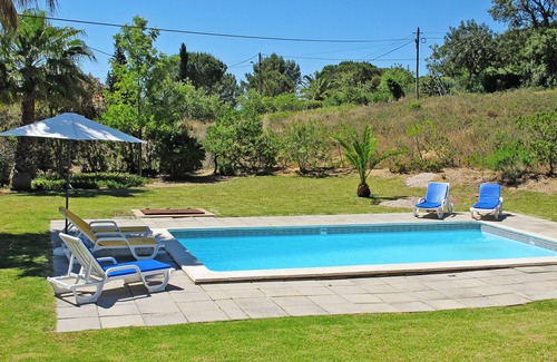 House "Monte Quercus". 700 m from the centre of Porches, 50 km from the centre of Faro, 5 km from the sea. Private: property 5'000 m2, well-kept garden (fenced) with lawn and wildlife garden, swimming pool (7 x 4 m, depth 110 - 180 cm, seasonal availability: 15.Mar. - 15.Nov.). Parking on the premises. Supermarket 4 km, restaurant 600 m, railway station "Poço Barreto" 4.7 km, sandy beach "Nossa Senhora da Rocha" 5 km, indoor swimming pool 6 km. Golf course (18 hole) 8.4 km, tennis 5 km. Nearby attractions: Aquapark 4 km.