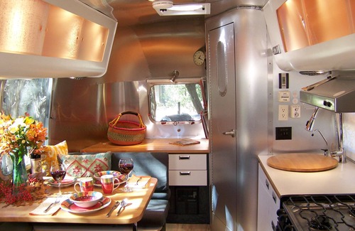 the lovingly refurbished 2004 airstream s original interior was designed by christopher deam, and was one of the first "international ccd" designs It s conpact, yet bright and airy with lots of counter space for cooking, dining, playing board games, and writing your novel. There s even a seperate desk for additional counter space.