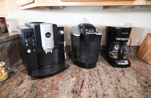 house features include: an expansive open kitchen, dining and living space, with a striking stone gas fireplace; granite-topped bar provides additional seating to the dining room table, which seats six; a large, well-designed kitchen with granite counters and upgraded stainless steel appliances including all the cooking and serving utensils necessary to prepare any meal; a gas bbq grill located on the deck is available for all your grilling needs