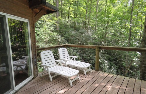 Moss Rock offers the best combination of modern amenities without forgetting the classic experience of a mountainside cabin. This OFF GRID cabin features a beautifully designed interior, oak hardwood floors, one queen bed downstairs and two queen beds in a second story loft, an oversized deck and a stone fire pit outside. You, your family and friends will love the one of a kind experience this cabin has to offer.
